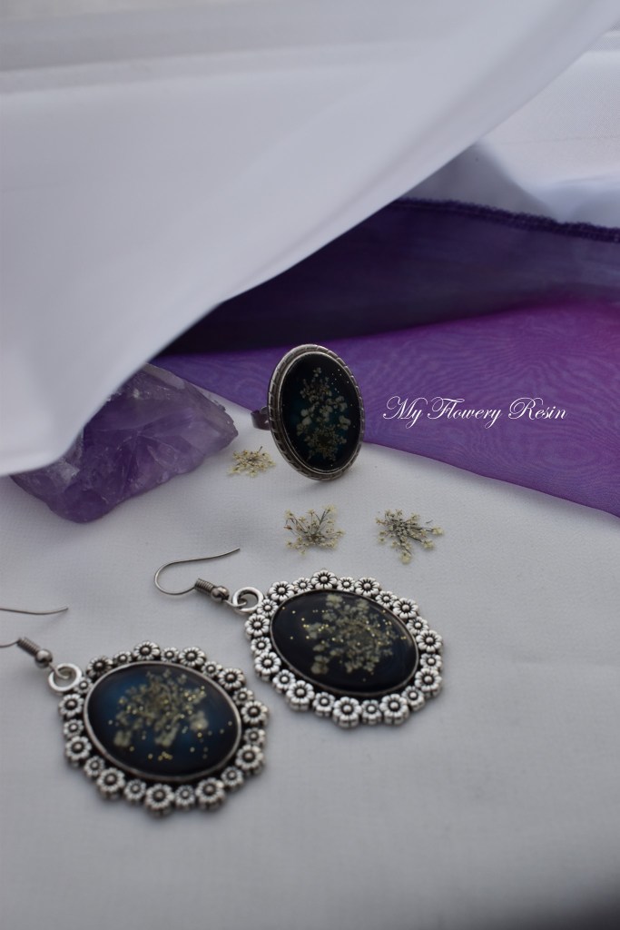Ako ste više ljubitelj plavih tonova, danas predstavljamo set sa tirkizno plavim cvijećem; naušnice na šaraf i ogrlica (privjesak).