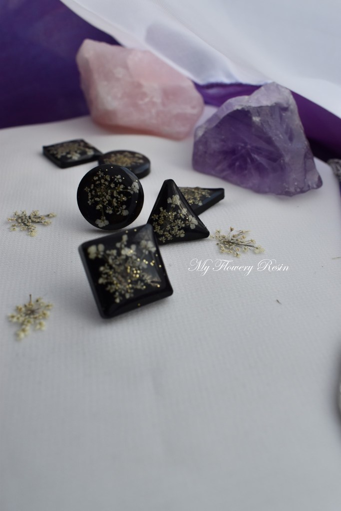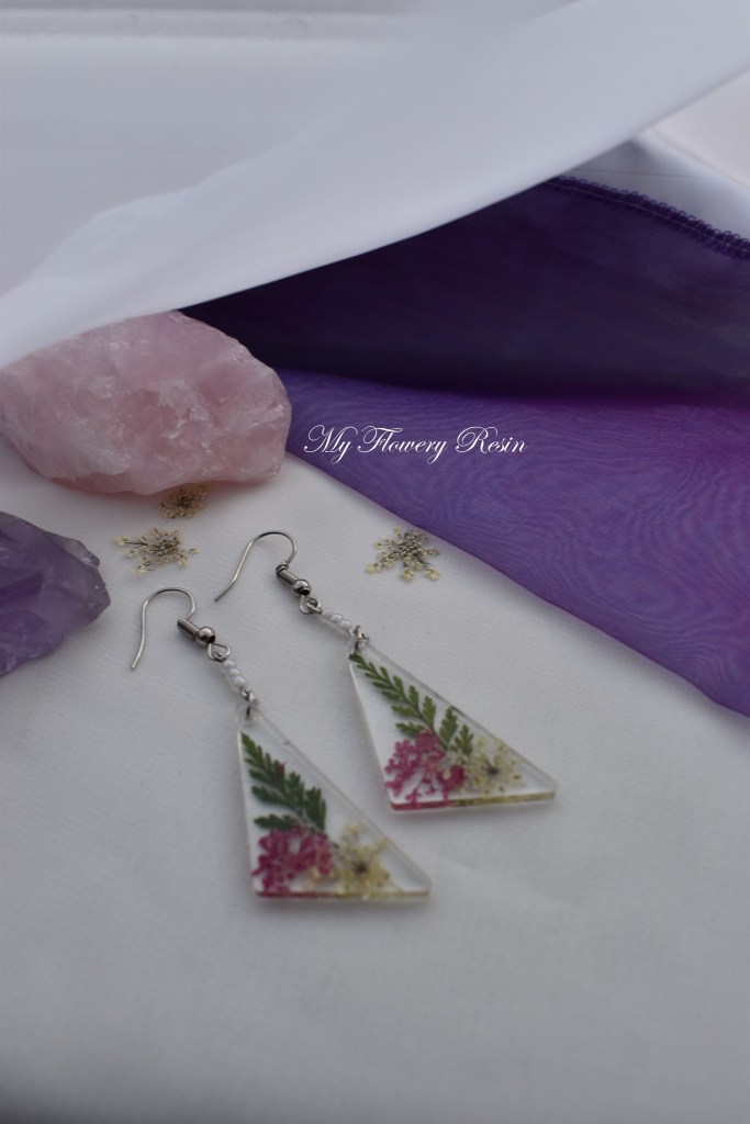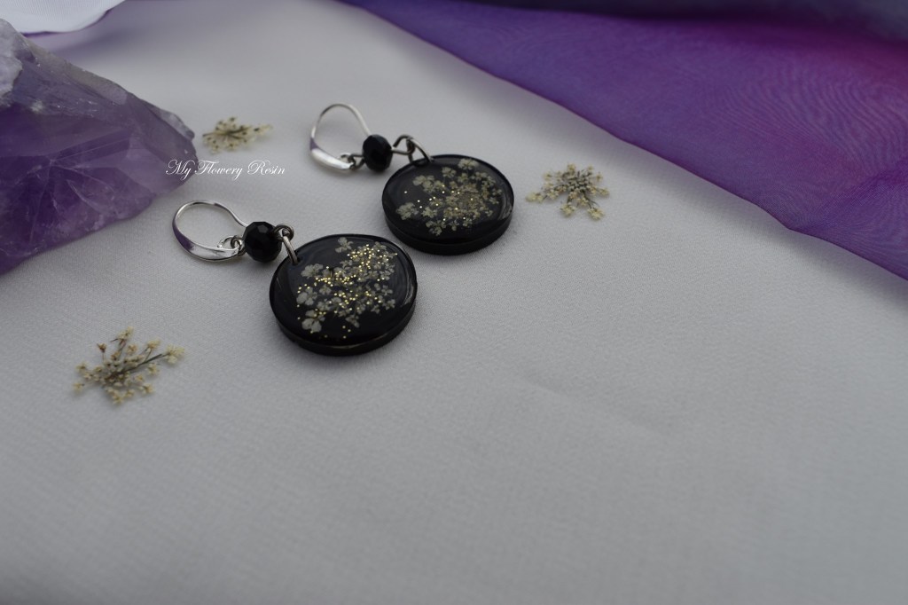 Naušnice sa tamnoljubičastim cvjetićima i zlatnim listićima djeluju vrlo efektno 🌸✨ Kako vam se čine? 😊